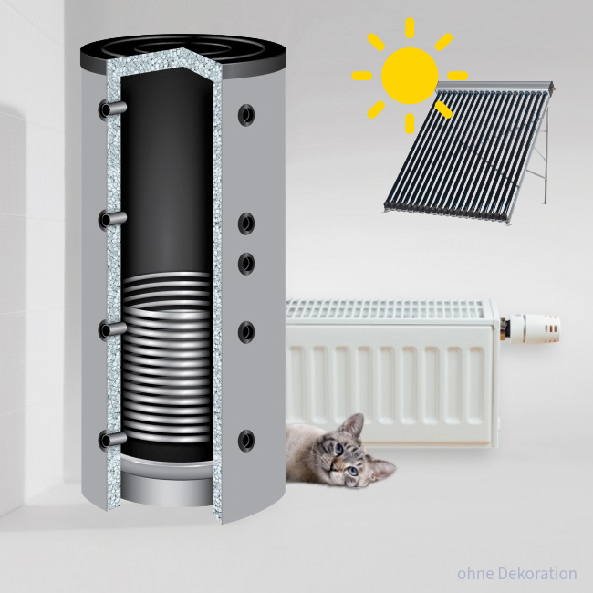 Pufferspeicher sind ausschließlich mit Heizungswasser befüllte Wärmespeicher und aus Qualitätsstahl S235JR+AR nach DIN 4753 u. DIN EN 12897 gefertigt. Die Behälter sind innen roh, außen grundiert und verfügen über viele Anschlussmöglichkeiten.